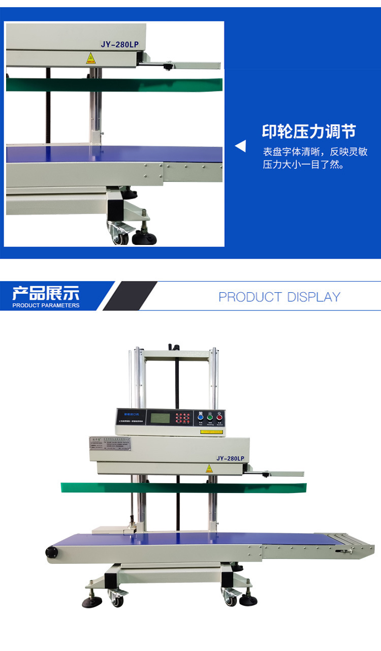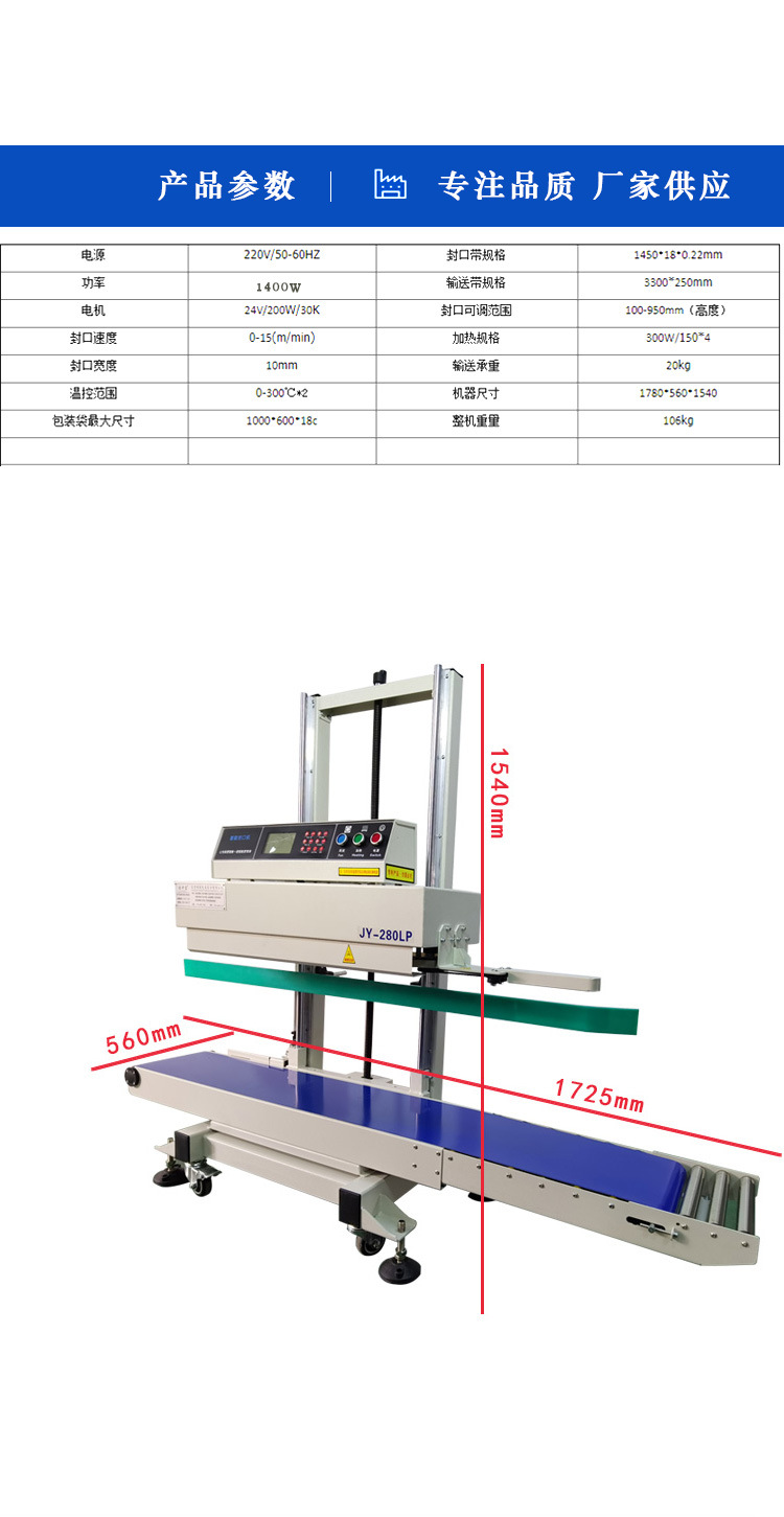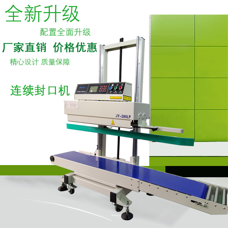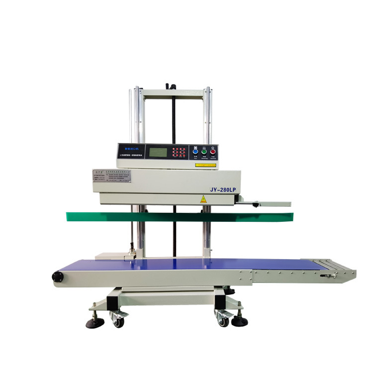 立式連續式封口機由輸送帶、導向橡膠帶等組成,用于輸送待封口的包裝袋,保證其準確地通過各個工作區域
