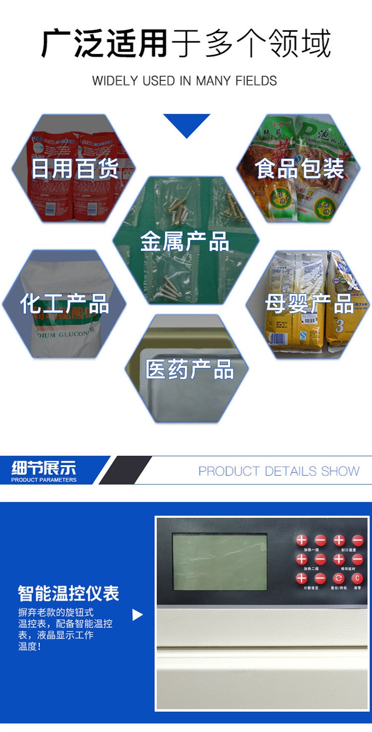 - 醫藥行業:可對藥品的鋁箔袋、塑料袋、復合袋等進行封口,確保藥品的密封性和質量安全。