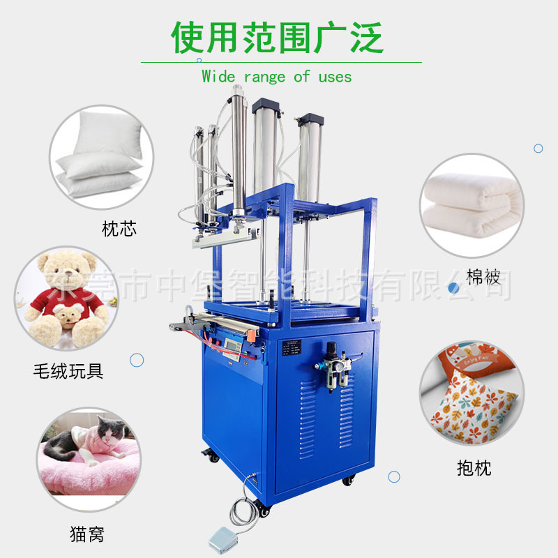 主要用于壓縮包裝羽絨被服、太空棉被服、枕頭、靠墊、服裝、海綿等蓬松物品,也適用于食品、飲料、糖果、文化用品、工藝美術、五金工具、日用百貨、化工用品等物體的壓縮包裝。