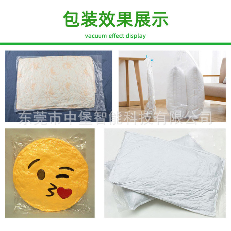 真空壓縮包裝機能大幅縮減產品體積,如紡織品、家居用品等蓬松商品經包裝后體積可減少 50% 以上