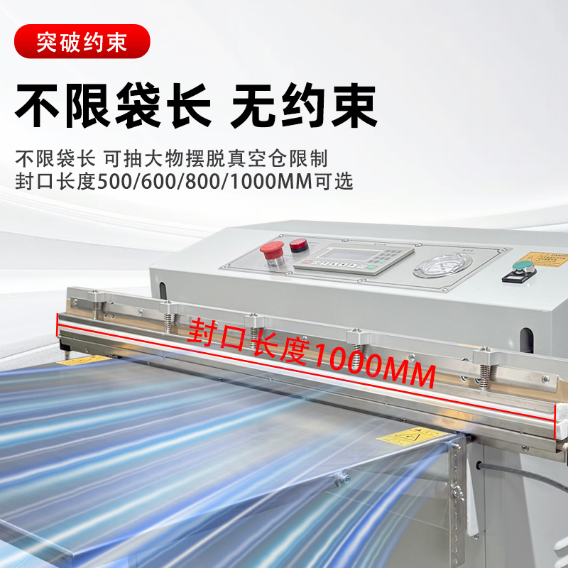 - 適配多場景:支持 PE、PA、鋁箔等多種包裝材料,可切換 “真空封口”“充氣保鮮” 兩種模式,兼顧工業(yè)防銹與食品保鮮需求。